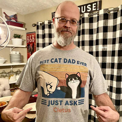 My husband loves his new t-shirt!! (looks just like our cat too!)