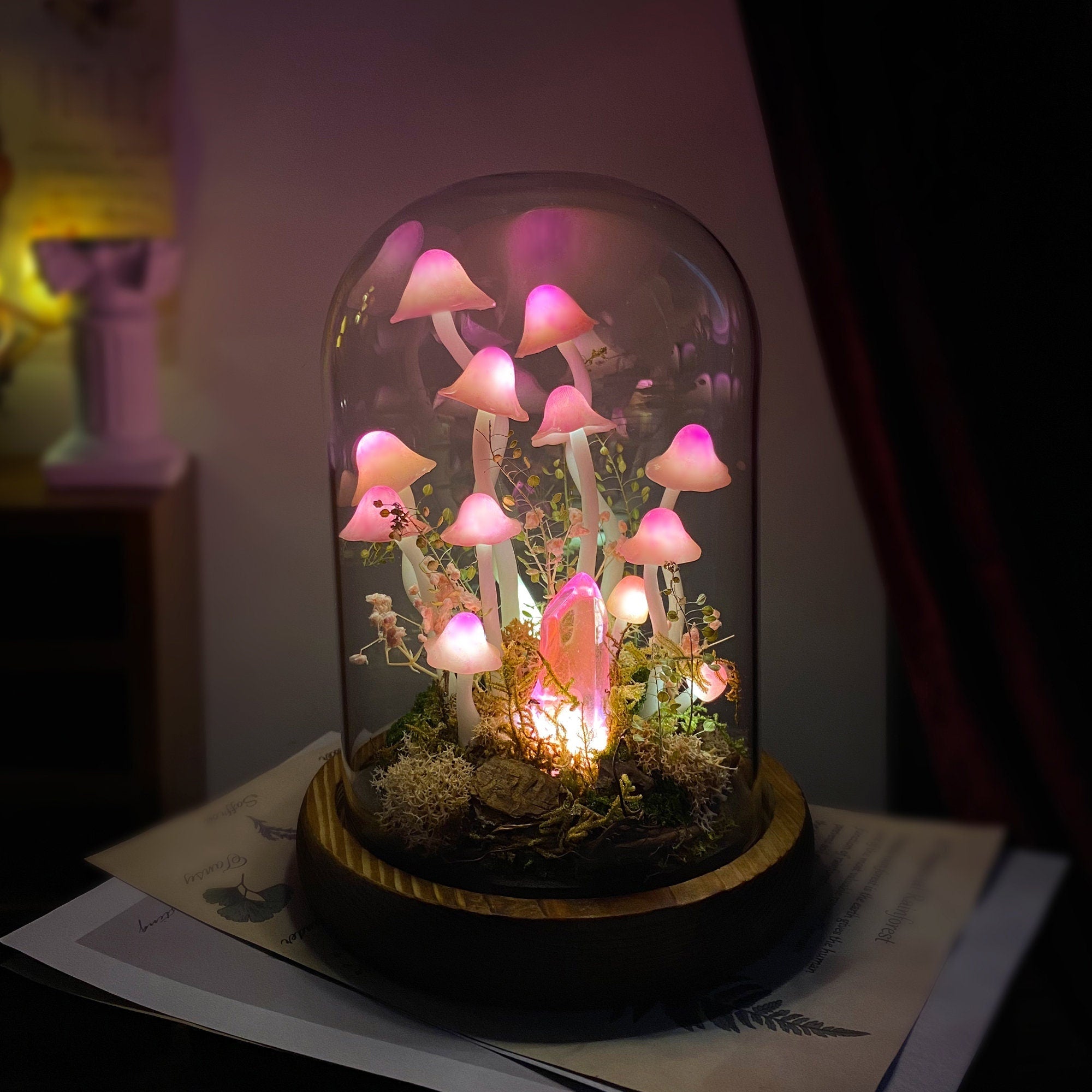 🍄In the heart of a mystical forest, there's an enchanting little grove of pink mushrooms. As night falls, these mushrooms, along with a glowing pink crystal, emit a soft light, like they're whispering an old fairy tale. This mushroom night light perfectly captures that magical scene, bringing a touch of charm and tranquility to any corner of your home. Turn it on, and let the warm glow transport you to a fairy-tale dream world. Whether for home decor or as a gift, it's absolutely unique and heartwarming.