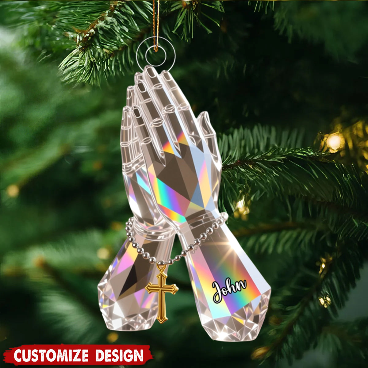 Praying Hand With Roses - Personalized Christian Acrylic Ornament