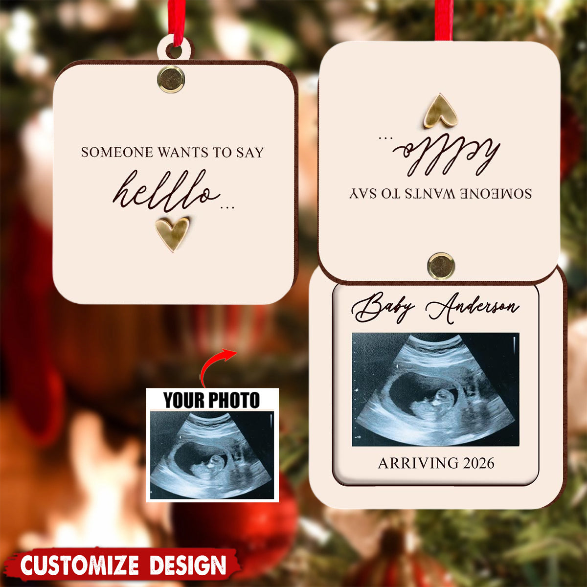 Pregnant Announcement - Personalized Pregnancy Flip Ornament